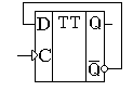 T-триггер — это счетный триггер. У данного триггера имеется только один вход. Принцип работы T-триггера заключается в следующем. После поступления на вход T импульса, состояние триггера меняется на прямо противоположное. Счётным он называется потому, что T триггер как бы подсчитывает количество импульсов, поступивших на его вход. Жаль только, что считать этот триггер умеет только до одного. При поступлении второго импульса T-триггер снова сбрасывается в исходное состояние. T-триггеры строятся только на базе двухступенчатых триггеров, подобных рассмотренному ранее D триггеру. Использование двух триггеров позволяет избежать неопределенного состояния схемы при разрешающем потенциале на входе синхронизации "C", так как счетные триггеры строятся при помощи схем с обратной связью. T триггер можно синтезировать из любого двухступенчатого триггера. Рассмотрим пример синтеза T триггера из динамического D триггера. Для того чтобы превратить D триггер в счётный, необходимо ввести цепь обратной связи с инверсного выхода этого триггера на вход, как показано на рисунке 1.