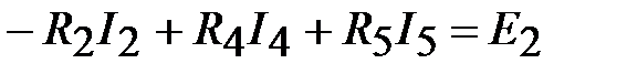 Количество уравнений, составленных по второму закону Кирхгофа, должно быть равно количеству независимых контуров. Для схемы цепи (рис. 6) надо составить три уравнения по второму закону Кирхгофа для трёх независимых контуров. Примем направление обхода по часовой стрелке (указано круглыми стрелками). Тогда для контура 1