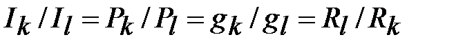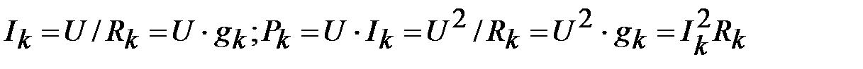 Соотношение между токами, мощностями, проводимостями и сопротивлениями для