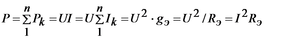 Если рассматривать мощность как работу, совершаемую в единицу времени, то с точки зрения электрической цепи формулу (9) можно интерпретировать как количество энергии вырабатываемой источниками в единицу времени (левая часть равенства) и количество энергии, потребляемой в единицу времени (правая часть равенства). Как видно нарушение равенства (9) «в любую сторону» противоречит закону сохранения энергии. Если имеем цепь постоянного тока, то формулу (9) можно конкретизировать и развернуть применительно к схеме замещения цепи с источниками ЭДС