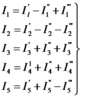 Как видно, метод расчёта электрических цепей с использованием принципа суперпозиций является довольно громоздким и поэтому применяется редко. Он целесообразен тогда, когда электрическое состояние цепи определено для каких – либо источников ЭДС и токов и требуется проанализировать электрическое состояние цепи при изменении ЭДС или тока одного из источников. В этом случае нет необходимости вновь рассчитывать значения токов и напряжений от действия всех источников, а достаточно определить лишь частичные токи и напряжения от действия дополнительной ЭДС Пример: На схеме замещения электрической цепи (рис. 9) при заданных значениях