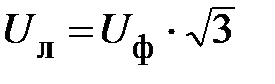 Соотношения (9) и (10) устанавливают связь между линейными и фазными напряжениями при любом режиме работы данной трёхфазной цепи. Изобразим эти соотношения на комплексной плоскости (рис. 4). Из рис.4 видно, что модули фазных (U ф) и линейных (U л) напряжений связаны соотношением