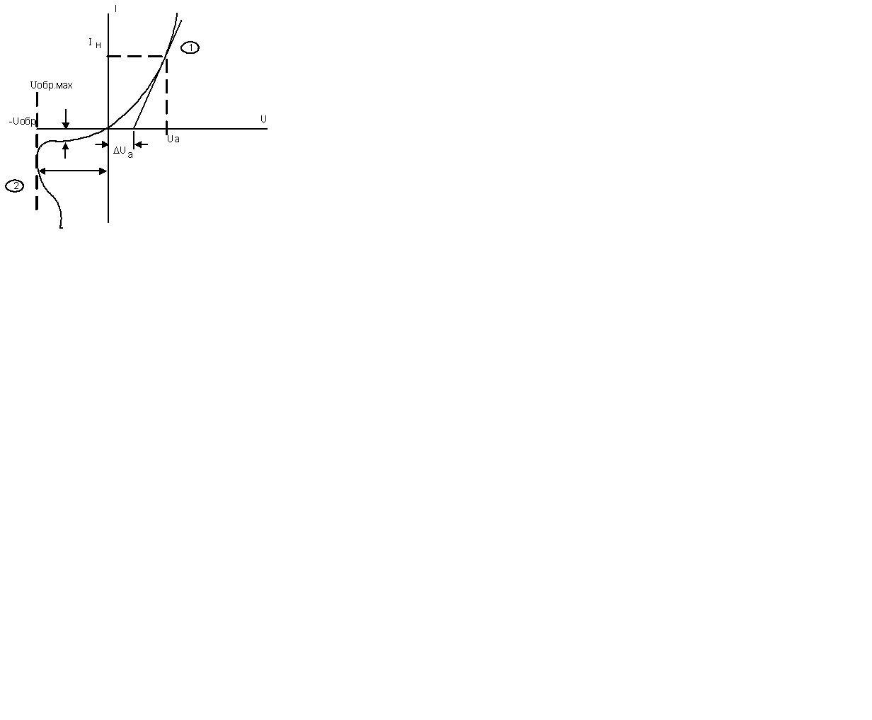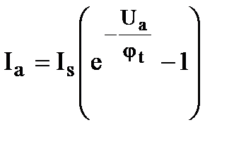 Полупровониковым диодом называется прибор, который имеет два вывода и содержит один или несколько р-п-переходов. Все полупроводниковые диоды можно разделить на две группы: выпрямительные и специальные. Выпрямительные диоды предназначены для выпрямления переменного тока. В зависимости от частоты и формы переменного напряжения они делятся на высокочастотные, низкочастотные и импульсные. Специальные диоды используют различные свойства п-р-переходов, явления пробоя, барьерную емкость, наличие участков с отрицательным сопротивлением. Конструктивно выпрямительные диоды делятся на точечные и плосткостные, а по технологии изготовления на сплавные, диффузионные и эпитаксильные. Плосткостные диоды благодаря большой площади п-р-перехода используются для выпрямления больших токов. Точечные диоды имеют малую площадь перехода и соответственно выпрямляют малые значения переменного тока. Выпрямительные диоды большой мощности называются силовыми. Изготовляются они из кремния или арсенида галлия. Германий практически не применяется из-за сильной температурной зависимости обратного тока. Кремневые сплавные диоды используются для выпрямления переменного тока с частотой до 5кГц. Кремненые диффузионные диоды могут работать на повышенной частоте до 100кГц. Кремненые эпитаксиальные диоды с металлической подложкой могут использоваться при частотах 500кГц. Арсенидгаллиевые диоды способны работать в диапазоне частот до нескольких МГц Остановимся на свойствах диода. Наиболее полно эти свойства могут определены исходя из вольтамперной характеристики диода, т.е. зависимости ia=ƒ(Ua). Выражение, описывающее вольтамперную характеристику выпрямительного диода, имеет вид.