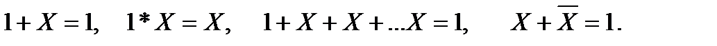 Введем некоторые понятия, которые используются при построении логических устройств. Логическим сообщением наз. такое сообщение истинность или ложность, которого может быть оценена однозначно. Каждое логическое сообщение может быть заменено математическим эквивалентом – логической функцией. Для описания взаимодействий между логическими сообщениями или логическими функциями введем понятие логическая операция. Взаимосвязь логических переменных образует логическую функцию у = f(х). Так как аргумент и функция принимают конечное число значений, а именно только два значения (1 и 0), то число возможных логических функций всегда конечно и равно: N=2m=22n, где n- число независимых переменных, m=2n – число наборов независимых переменных. Для двух переменных имеем у=f(х1, х2), N=22n=16. (таблица 6.1.) Таким образом, для двух переменных имеем 16 логических функций. Все операции над логическими функциями совершаются при помощи законов алгебры логики. Отличие алгебры логики от обычной алгебры заключается в том, что функции могут принимать значения только 0, 1. Обработка информации, которая дается в виде действия, ведется в двоичной системе, которая имеет только две цифры 0,1. Задача алгебры логики заключается в том чтобы: 1. Математически записывать логические сообщения и связи между ними. 2. Реализовывать логические уравнения в виде логических схем, т.е. переход от аналитических описаний к логическим автоматам. 3. Производить реализацию логических автоматов в оптимальном виде. Таблица 3.1. Основные законы алгебры логики. 1.Закон действия с единицей.