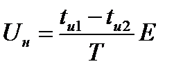 Реверсивные ИППН обеспечивают не только регулирование выходного напряжения, но и изменение его полярности. Они находят применение для регулирования частоты и направления вращения двигателей постоянного тока.Реверсивные ИППН выполняются по тиристорной мостовой схеме с нагрузкой, включенной в диагональ моста (рис.3.16.). Рис.7.11. Реверсивний ІППН Встречно-параллельно тиристорам подключены диоды, предназначенные для создания цепи протекания тока активно-индуктивной нагрузки при запертых тиристорах. Помимо основных элементов схема дополнена узлами принудительной коммутации (на рис.7.11., не показаны) для проведения операции запирания тиристоров. Рассматриваемые преобразователи предусматривают несколько способов управления тиристорами. Способ управления, характеризуется поочередным переключением накрест лежащих тиристоров. В течение периода работы схемы вначале проводит ток одна пара тиристоров, а затем другая. Выходное напряжение преобразователя имеет вид двуполярной кривой 7.12, где tи1 - интервал проводимости тиристоров Т1, Т2 (длительность импульса положительной полярности), tи2 - интервал проводимости тиристоров Т3, Т4 (длительность импульса отрицательной полярности). Рис. 7.12.Временные диаграммы реверсивного ИППН. Среднее значение этого напряжения находят из соотношения