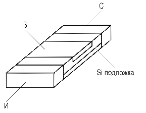 - крутизну характеристики S при Uси =-10В и Uзи=0; - внутреннее (дифференциальное) сопротивление канала; - R-активную составляющую входной проводимости при Uси=-10В,Uзи=0; - статический коэффициент усиления по напряжению; - начальный ток стока при Uси=-10В и Uзи=0; и сравнить полученные электрические параметры со справочными. Пояснения к работе Полевой транзистор является очень широко используемым активным (т. е. способным усиливать сигналы) полупроводниковым прибором. Полевыми транзисторами называют активные полупроводниковые приборы, в которых выходным током управляют с помощью электрического поля, создаваемым между управляющим электродом 3 и И (в биполярных транзисторах выходной ток управляется входным током). Полевой транзистор имеет три электрода: исток (И) – электрод, от которого носители начинают движение; сток (С) – Электрод, к которому они движутся; затвор (3) – общий внешний электрод. Полевые транзисторы называют также униполярными потому, что их работа основана; на использовании носителей одного знака: только дырок пли только электронов, в отличие от биполярных транзисторов, где важную роль играют типы носителей: инжекция неосновных носителей одного знака сопровождается компенсацией основных носителей другого знака при соблюдении условий электрической нейтральности. Униполярные транзисторы подразделяются на три класса: полевые транзисторы с затвором в виде р-п перехода (ПТ); транзисторы со структурой металл-диэлектрик-полупроводник (МДП-транзисторы); транзисторы со структурой металл-окисел-полупроводник (МОП-транзисторы). Полевой транзистор с управляющим p-n переходом представляет собой тонкую кремневую пластину с одним p-n - переходом в центральной части и омическими контактами по краям (рис.3.1).