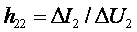 U1 U2 Рис. 7-1. Схема транзистора, представленного в виде активного четырёхполюсника. В систему h-параметров входят следующие величины. Входное сопротивление