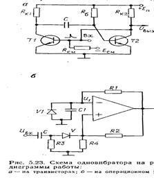 Одновибраторы, или, как их называют ждущие мультивибраторы, относятся к классу генераторов прямоугольных импульсов, имеющих одно устойчивое состояние равновесия, т.е. это моностабильный генератор импульсов. Для его работы необходима подача на вход запускающего импульса, который выводит ОВ из устойчивого состояния равновесия, и через время, определяемое внутренними параметрами схемы, он возвращается в исходное устойчивое состояние.
