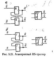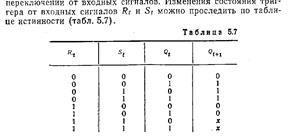 Триггер – генератор прямоугольных импульсов c двумя длительно устойчивыми состояниями равновесия. переключение триггера из одного длительно устойчивого состояния равновесия в другое происходит под действием внешнего сигнала. По способу записи триггеры подразделяются на асинхронные и синхронные: асинхронные триггеры меняют свое состояние от входных сигналов в момент их подачи; синхронные триггеры меняют свое состояние от входных сигналов только при подаче синхронизирующего (тактового) сигнала. Триггеры— динамические и статические. Динамический триггер представляет собой систему, одно из состояний которой (единичное) характеризуется наличием на выходе непрерывной последовательности импульсов определённой частоты, а другое — отсутствием выходных импульсов (нулевое). К статическим триггерам относят устройства, каждое состояние которых характеризуется неизменными уровнями выходного напряжения (выходными потенциалами): высоким — близким к напряжению питания и низким — около нуля. По функциональному признаку триггеры могут быть RS, D, T, JK и тп.