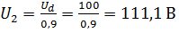 Действующее значение напряжения во вторичной обмотке: