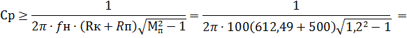 Величину Cp обычно округляют до целого числа в большую сторону. Емкость конденсатора обратной связи, Ф,