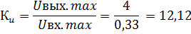 где Uвхmax – амплитудное значение входного напряжения; Uвх.max=Uвх.А; Uвых.max – амплитуда выходного напряжения (заданав исходных данных). При вариантных значениях: Квх=9,07, К1=1,18, К2=1,13, Uост=0,628 В, К3=1,23 – основные результаты расчета оказались следующими:
