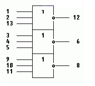 В виду того, что в промышленной электронике нет элементов "3ИЛИ", воспользуемся микросхемой 155ЛЕ4 с элементами "3ИЛИ-НЕ". Для получения необходимого нам результата инвертируем выход логическим элементом "НЕ", использовав свободный вход микросхемы 155ЛН1.