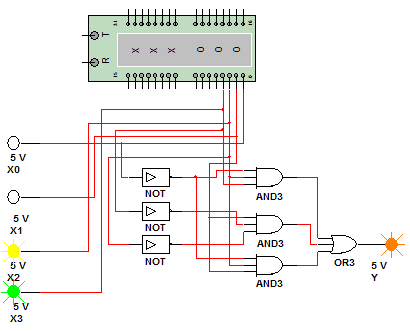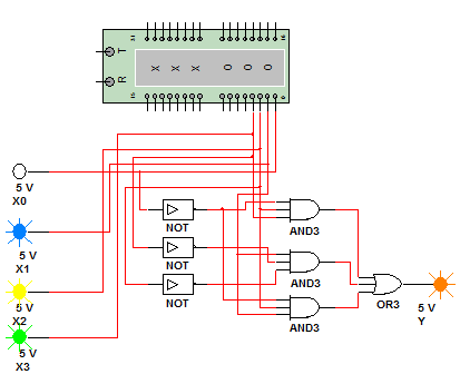 4. Дешифратор Задание: Скомбинируем комбинационную логическую схему 4-х аргументов (х0, х1, х2,х3) реализующие функцию, заданную в таблице №1, используя элементы "И", "ИЛИ", "НЕ" с любым количеством входов.