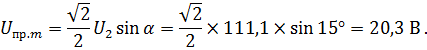 Максимальное значение обратного напряжения на вентиле:
