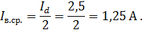 Среднее значение тока через вентиль: