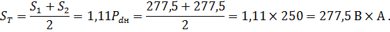 Полная расчётная (типовая) мощность трансформатора: