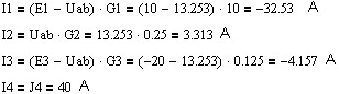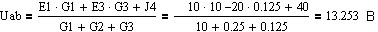 Далее расчитаем напряжение между узлами а и b по формуле (1):