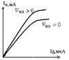 а) кривые составляют значительно больший угол наклона; б) снижение времени жизни неосновных носителей в базе с ростом уровня инжекции; в) смещение характеристик в зависимости от Uкэ есть следствие модуляции ширины базы