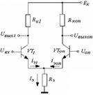 На базу одного из транзисторов, например, VTоп, подано некоторое постоянное опорное напряжение Uоп. . Изменение напряжения, подаваемого на вход UВХ ниже или выше Uоп, приводит к перераспределению постоянного тока эмиттера Iэ, заданного токостабилизирующим резистором Rэ, между транзисторами VT1 и VTоп. При этом транзисторы не входят в режим насыщения, и, следовательно, в ключе принципиально отсутствует интервал рассасывания их неосновных носителей.
