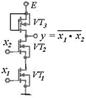 а) МДП, в двухвходовой схеме И-НЕ входные транзисторы VT1 и VT2 соединены последовательно. Если хотя бы на один из входов подан низкий уровень напряжения, соответствующий транзистор запирается, ток через входные транзисторы не течет, и на выходе схемы будет высокий уровень. И только при подаче на все входы схемы высокого уровня транзисторы VT1 и VT2 откроются, течет ток, и на выходе будет низкий уровень. Выполняется операция .