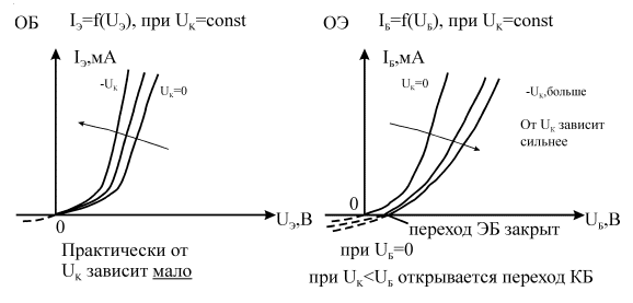 Рис. 5. Входные характеристики (характеристики открытого p-n перехода)