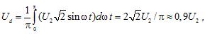 где U2 ─ действующее значение переменного напряжения на входе выпрямителя.