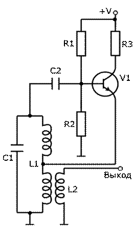 На рис.3.2.1 изображен генератор Хартли. Величина обратной связи в этой схеме зависит от положения витков катушки L1. Выходной сигнал снимается с катушки L2.