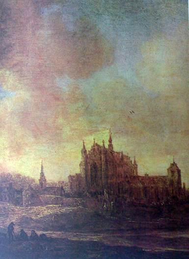 Вермер, за всю жизнь написавший только два или три пейзажа, как пейзажист оказался далеко впереди тех современных ему голландских художников, которые постоянно работали в этом жанре. А между тем среди них были замечательные мастера. Именно через голландский пейзаж ощущается, что жизнь этой маленькой страны не была такой уж ограниченно-филистерской. Когда художники выводят нас из маленьких аккуратных комнат на вольный воздух, мы чувствуем дыхание моря, видим корабли, надутые ветром паруса, широкие просторы, большие деревья, большое небо, почти всегда тревожное, с наплывами облаков, и тут-то вспоминается, что история Голландии – это ведь история борьбы с морем, обуздания моря, постоянно грозившего поглотить устроенную человеческим трудом сушу. Уют Голландии давался ей нелегко, застывать в дремоте не приходилось, и при всей их принципиальной «негероичности» голландцы не могли быть душевно дряблыми людьми. Первое место среди голландских пейзажистов принадлежит романтически настроенному художнику – Якобу Рейсдалу. В его сумрачных мощных пейзажах нельзя обнаружить ни малейшего намека на пристрастие к «милым видам», не чуждое Гойену, Саломону Рейсдалу, Поттеру. Равнинные ландшафты, просторы моря, водопады, дюны, леса у Якоба Рейсдала внушительны, как храм мироздания. В его лесном «Болоте», окруженном старыми узловатыми деревьями-великанами, даже чудится что-то первобытное. Рейсдал писал свои картины с тщательностью и глубокой серьезностью, словно исследуя и прослеживая пытливой кистью извилистый путь волн, рост деревьев, движение облаков и теней облаков, скользящих по земле. Лесные пейзажи он особенно любил; Б. Виппер называет Рейсдала «психологом леса», и это сказано очень точно: действительно, художник чувствует «индивидуальность» каждого дерева – раскинуло ли оно свободно и гордо свою крону или приникло к земле, прям его ствол или изогнут, как винтовая лестница. Он часто пишет деревья, сотрясаемые бурей и опаленные молнией. Рейсдал чувствует драматизм жизни природы – жизни, упрямо пролагающей себе путь, снова и снова обвивающей молодыми побегами и мертвые, засохшие стволы., И только в одной композиции царит величавая тишина смерти – это его знаменитое «Еврейское кладбище», где «с неба лунные лучи скользят на камни гробовые». Учеником Рейсдала был талантливый Гоббема, пейзажист более мягкого и жизнерадостного склада. Он часто брал те же пейзажные мотивы, что и Рейсдал, однако кажется, что это другая природа, потому что другое отношение к ней у художника. Рейсдал видит пейзаж в весомых, темных массивах – Гоббема в легких, сказочных формах. Для него характерна оригинальная, запоминающаяся композиция «Аллея в Мидделгарнисе» с высокими и очень тонкими стволами, зрительно не сливающимися воедино, а образующими красивую ажурную решетку на фоне неба.