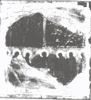 11. Суммарная рентгенограмма фрагмента двусторонней иконы «Георгий» (рис.21) с изображением Богоматери на обороте и послойно-контактная рентгенограмма, снятая со стороны изображения Георгия.