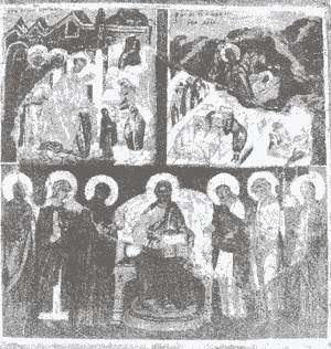 10. Трехчастная икона XV-XVI в. Рентгенограмма, показывающая сохранившуюся часть первоначальной живописи и фотография иконы после реставрации.