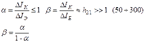 1) Входное сопротивление при коротко замкнутом выходе 2)Коэффициент обратной связи по напряжению 3) Усиление тока при к.з. на выходе по переменному току Показывает коэффициент усиления переменного тока транзистором в режиме работы без нагрузки. 4) Выходная проводимость при х.х. на входе Представляет собой внутреннюю проводимость для переменного тока между выходными зажимами транзистора.