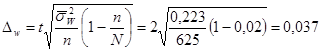Выборка показала, что расход сырья от 20 до 24 граммов на единицу продукции приходится на 80% изделий. Определим предельную ошибку доли:
