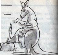 При сидячей работе часто болит спина, причем боли усиливаются, если вы постоянно держите руки перед собой, так как происходит усиление давления на межпозвоночные хрящи. Сядьте на стул, поставьте ноги на ширину плеч наклонитесь вперёд как можно дальше. Голова по. действием собственной тяжести опустится вслед за туловищем. Смотрите под стул. Чтобы потянуть и передние мышцы плечевого пояса, соедините руки за спиной и, насколько возможно, поднимите их вверх, Выполняйте это упражнение в течение 7 секунд. Аля интенсивного растяжения мышц левой нижней части спины левую ногу положите на правую. Левой рукой охватите спереди левую стопу, одновременно вытягивая ее вперед. Вслед за ногой вперед переместится и все тело. Растяжение мышц нижней части спины в положении лежа: охватите обеими руками согнутые в коленях ноги и притяните их как можно ближе к животу. Голову при этом приподнимите. Чтобы потянуть мышцы нижней части спины, можно в положении сидя охватить обеими руками левую ногу и притянуть ее к груди, а затем повторить это упражнение с правой ногой. Наше путешествие продолжается, мы движемся в Австралию, где в качестве ганзейцев выступают кенгуру.
