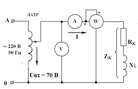Задание 1. Определить электрические параметры катушки и конденсатора в цепи переменного синусоидального тока частотой f = 50 Гц. 1. Собрать электрическую схему c катушкой индуктивности (рис.13). Включая ваттметр, необходимо генераторные зажимы токовой обмотки и обмотки напряжения, отмеченные звездочками, присоединить к одному и тому же проводу со стороны источника электрической энергии (генератора).