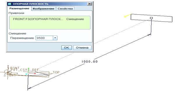 Формування параметрів керування теоретичною поверхнею крилаПрактикум №2 Метою роботи є освоєння студентами прийомів використання параметрів для гнучкого управління формою та розмірами несучих поверхонь у середовищі системи Pro/Engineer. Завдання. Створити параметричну комп’ютерну модель для автома-тизованого керування формоутворенням теоретичної поверхні крила відповідно до наведеного в додатку Б індивідуального завдання та згідно з викладеним нижче порядком виконання комп’ютерного практикуму. Порядок виконання роботи. Параметрами в майстер-геометрії крила можуть бути, див. розділ 1, його розмах, коренева й кінцева хорди, кут поперечного V та ін. Визначення потрібних залежностей для наведених величин виконаємо наступним чином. На основі базової площини, в якій згідно з комп’ютерним практикумом №1 сформовано кореневий профіль, створіть нову площину, де розташовуватиметься кінцевий профіль крила. Для цього оберіть пункт меню «Вставить->Опорный элемент модели->Плоскость» та вкажіть необхідне зміщення нової площини відносно базової (рис. 3.10).