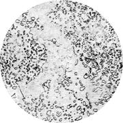 Увеличение: x500 Марка стали: 08Ю Структурные составляющие: феррит Лист для глубокой вытяжки толщиной 1 мм из мартеновской стали, раскисленный кремнием и алюминием. Прокатка в холодном состоянии на 30%, отжиг при 690° С в течение 20 ч, охлаждение с печью. Прокатка в дрессировочной клети с деформацией 1%. Твердость 95 HV. Феррит с мелкими выделениями нитрида алюминия.