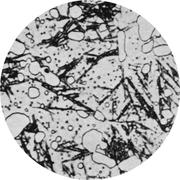 Увеличение: x500 Марка стали: Х12 Структурные составляющие: карбиды, перлит Термообработка: 970° С в течение 15 мин, 731° С в течение 20000 сек(—5,5 ч), охлаждение в воде. Твердость 327 HV.