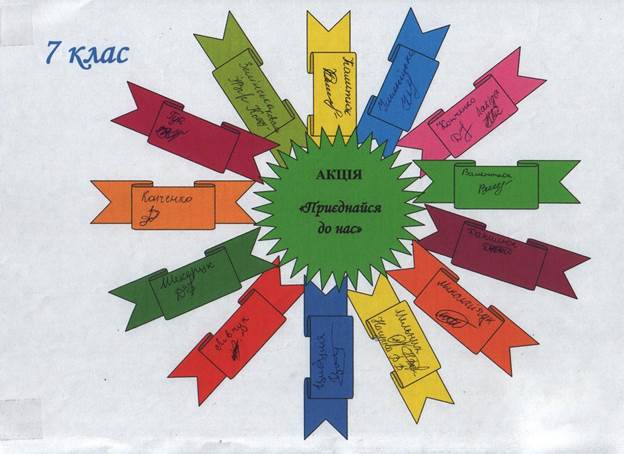 Рис. 1 Емблема акції Вона була проведена в навчальному закладі з метою пропаганди здорового способу життя серед школярів. Учням пропонувалося виявити своє ставлення до даної теми, прикріпивши стрічку та поставивши підпис на стенді. (Додаток А).