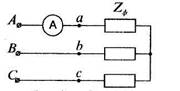Задача 5.5. В схемі, наведеній на рисунку, обчислити показ амперметра, якщо UАВ= 220 В, а Zф= 22 Ом.