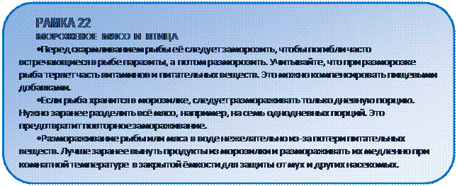 При использовании замороженного мяса и рыбы избегайте их повторного замораживания, т.к. это понижает качество пищи и способствует размножению микроорганизмов (Рамка 22). Во многих зоопарках используется живой корм для обогащения среды обитания. Зоопарки сами выращивают мышей, крыс, мучных червей, сверчков или кузнечиков. Нужно учесть, что в некоторых странах есть специальные правила относительно применения живого корма.
