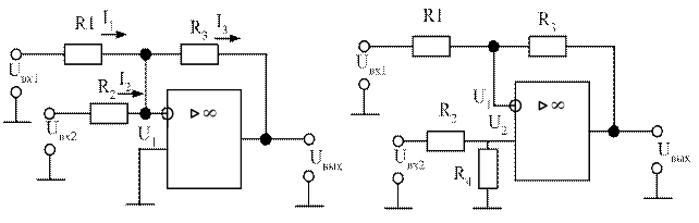 UВЫХ »- ((R3 /R1 ) UВХ1 + (R3 /R2 )) UВХ2 .