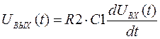 Дифференциатор выполняется в соответствии с рисунком 2.25. Используя (2.72) запишем в операторной форме UВЫХ(P)=UВХ(P)∙ R2/Z1(P)= UВХ(P)∙(P∙C2/R1) Переходя к оригиналу, получим