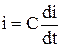 Как показано в разделе 2.2., ток в цепи с емкостью пропорционален скорости изменения напряжения, т.е.