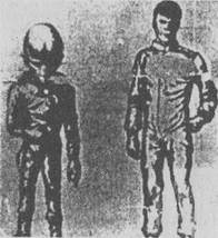 1 случай Рост 1 м. Серая одежда. Лицо как у лягушки. Сероватая кожа. Тело асимметрично (справа шире, правая рука длиннее левой). На руках когти. 2 случай Рост 1 м. Голый. Голова нормальной величины. Большие круглые глаза. Рот – щель. Уши как у летучей мыши, ноги короткие, руки длинные, с когтями. 3 случай Рост 4-5 м. Одежда темная. Каска с антенной.