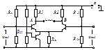 где Um1, Um2, Um3 – амплитуды гармоник 1, 2, 3… на выходе У при гармоническом колебании на его входе. Усилитель постоянного тока, выход. U которого пропорционально разности напряжений входных сигналов, назыв. дифференциальным усилителем (ДУ). Основными параметрами ДУ являются: 1. коэфф. усиления напряжения КU = Uвых / Uвх. 2.коэфф ослабления синфазных входных напряжений Кос. сф, равный отношению коэфф усиления напряжения КU к коэфф передачи синфазного входного напряжения и характеризующий неидеальность ДУ по синфазной помехе; у идеального ДУ д.б. Кос. сф равно бесконечности. 3. U смещения, характеризующее несимметричность входного каскада ДУ, связанную с несовершенством технологии его изготовления, и равное постоянному диф. напряжению которое необходимо подать на вход, чтобы сбалансировать ДУ, т.е. сделать его выходное направление Uвых равным 0. 4. разность входных токов, также связанная с несимметрией входного каскада ДУ и равная току, который необходимо подать на один из входов, чтобы выходное напряжение установилось равным 0 5. входное сопротивление (дифференциальное) Rвх, определяемое на входных выводах ДУ и равное отношению изменения входного (дифференциального) напряжения к изменению входного тока. 6. выходное сопротивление Rвых (сотни Ом), определяемое на выходных выводах ДУ и равное отношению изменения выходного напряжения к изменению выходного тока. 7. максимальное выходное напряжение Uвых max (единицы вольт), при котором не искажается форма выходного сигнала 8. верхняя граничная частота полосы пропускания fв (около 1 МГц).