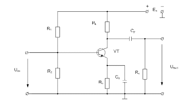 Требуется: 1. Выбрать тип транзистора. 2. Определить режим работы транзистора. 3. Определить сопротивление коллекторной нагрузки 4. Определить сопротивления 5. Определить ёмкость разделительного конденсатора 6. Определить коэффициент усиления каскада по напряжению 7. По приведённой схеме усилителя пояснить назначение каждого элемента.