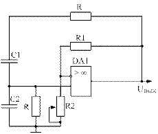 при коэффициенте усиления усилителя Возможно использование в этой же схеме RC -цепи “обратного” вида, в которой место включения элементов R и С изменено на противоположное. При тех же значениях R и С самовозбуждение такой схемы произойдёт на частоте