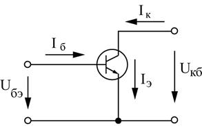 При подаче на переход база-эмиттер прямого напряжения UЭБ от источника питания возникает эмиттерный ток IЭ, основные носители заряда – электроны преодолевают переход и попадают в базу. База выполнена из обедненного носителями заряда p-полупроводника и для нее электроны являются неосновными носителями заряда. Попавшие в область базы электроны частично рекомбинируют с дырками базы. Но поскольку толщина базы небольшая и концентрация дырок в базе низкая, рекомбинируют лишь немногие электроны, образуя базовый ток IБ. Большинство же электронов, попав в ускоряющее электрическое поле вблизи коллекторного p-n-перехода, втягиваются в коллектор, свободно проходя через закрытый p-n-переход. Эта составляющая коллекторного тока мало зависит от напряжения на коллекторном p-n-переходе, т.е. при наличии электрического поля все электроны, за исключением рекомбинировавших, попадают в коллектор. Очевидно, что ток коллектора всегда меньше тока эмиттера на значение тока базы и практически равен току эмиттера. Связь между приращениями эмиттерного и коллекторного токов характеризуется коэффициентом передачи тока