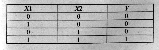 Логический элемент, осуществляющий операцию дизъюнкции, называется элементом «ИЛИ», реализуется логической интегральной микросхемой, имеющей два и более входов и один выход, который принимает значение «1» всякий раз, когда хотя бы один из его входов равен «1». Условное обозначение элемента приведено на рис. 1116. Операция «И» (логическое умножение или конъюнкция) обозначается символами «•» или ^, аналитически записывается как Y = X1•X2•...•Xn или Y = Х1^Х2^...^Хп. Таблица истинности (при двух аргументах) следующая: